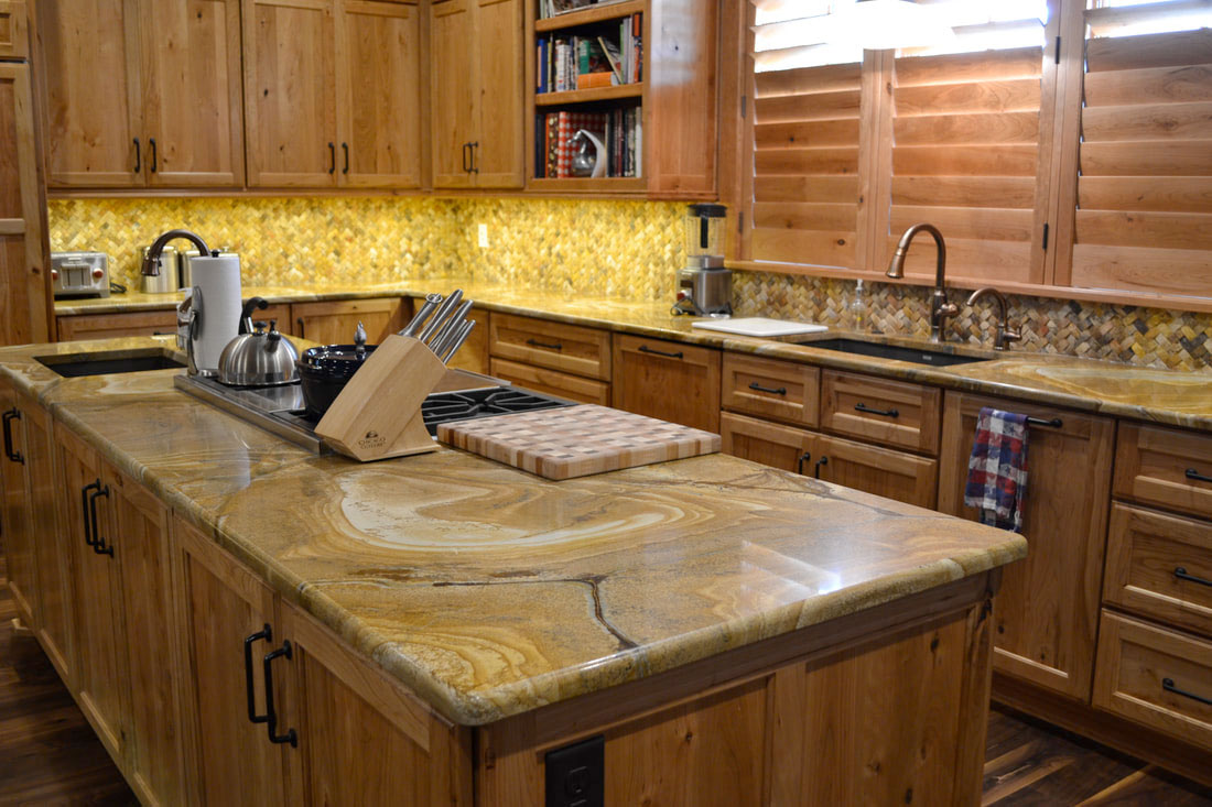 In addition to stone fabrication and installation, we also offer custom countertop design for kitchens in the Wichita area. We can help you select the best stone for your taste, lifestyle and budget. Granite and Quartz are the two most popular stones for kitchen countertops thanks to their durability, stain resistance and many color options. If you’re not sure which stone is right for you, learn more in our countertop education center.
