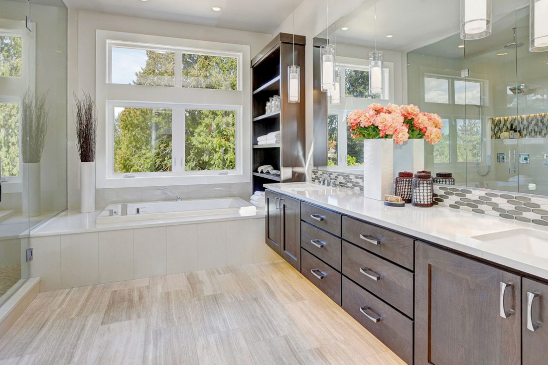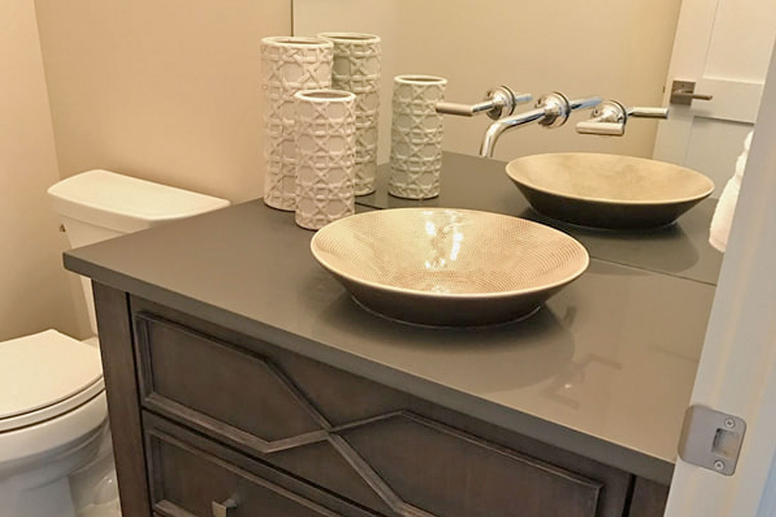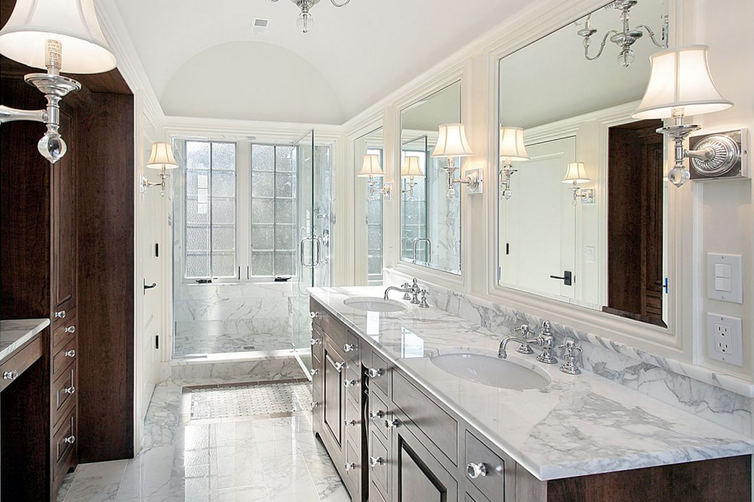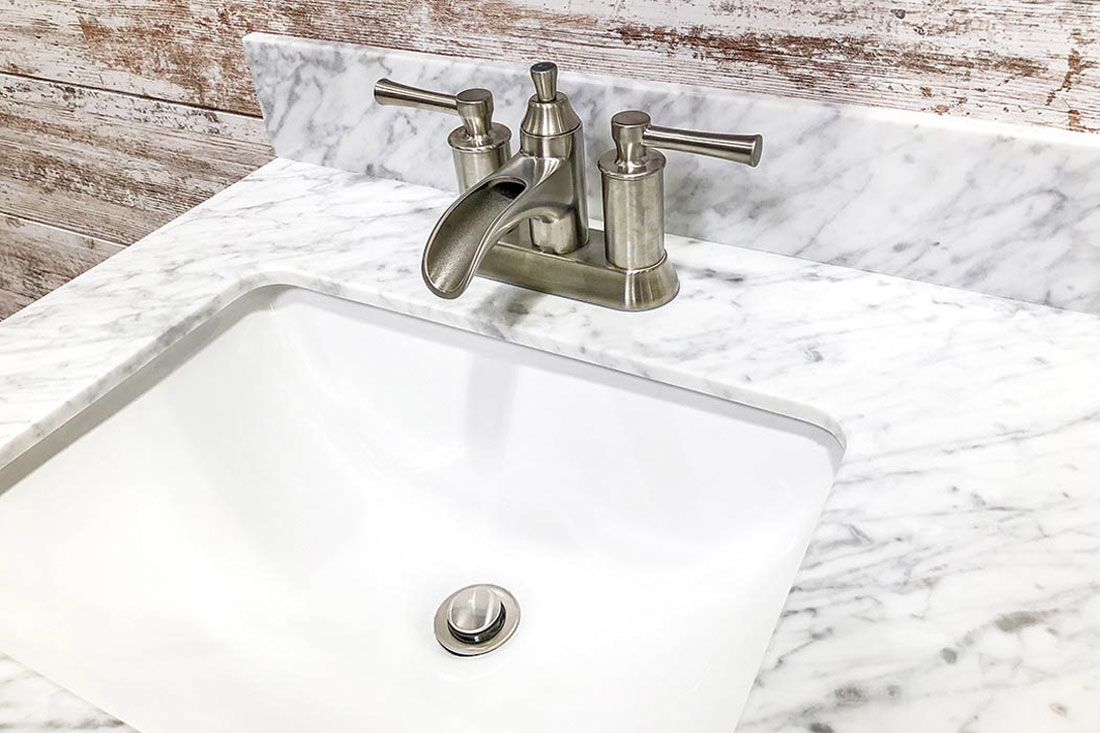 You’ll found our stone work in bathrooms all over the Wichita area. For bathrooms, we often install marble, granite and quartz countertops, vanities and showers. We have natural stones that will fit most any design aesthetic and budget.